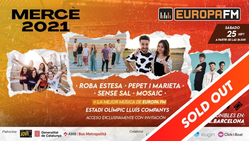 El escenario de Europa FM en La Mercè, del que ya cuelga el cartel de SOLD OUT, se colocará en el Estadi Olímpic Lluís Companys en Montjuïc y abrirá el telón a las 18:30 horas. Una auténtica fiesta de la que informaremos en nuestras redes.