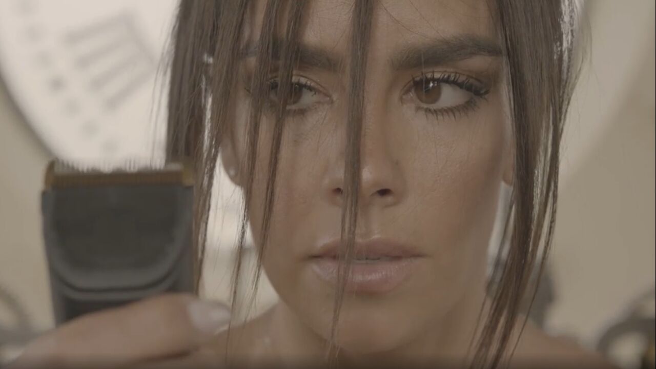 Tras observar todo lo que hay a su alrededor, Cristina coge unas tijeras y empieza a cortarse el pelo. Después, coge una maquinilla de afeitar y se la aproxima a la cabeza. Y ahí termina el vídeo.