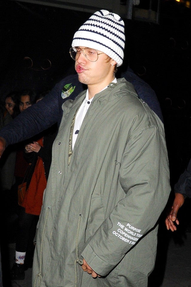 Las fotos que le tomaron posteriormente muestran a un Justin Bieber muy perjudicado que a penas puede abrir los ojos y no deja de resoplar, mientras sus guardaespaldas van abriéndole paso entre la gente.