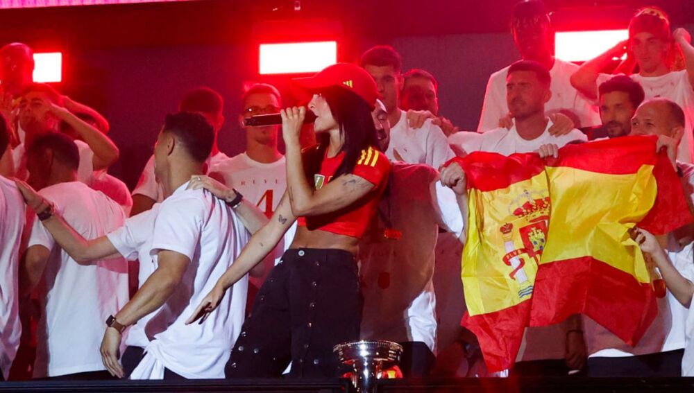 La cantante, que durante toda la competición se ha mostrado como una ferviente seguidora de La Roja, no faltó en Cibeles para recibir a la Selección... Y según parece, Gavi y Nico Williams cayeron rendidos a sus encantos.