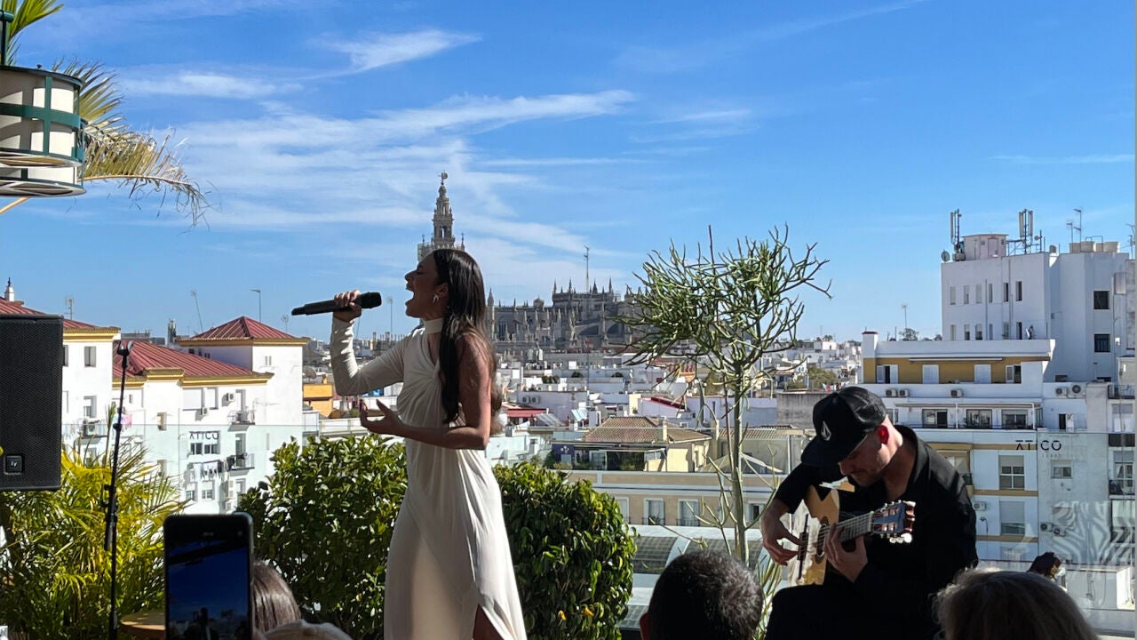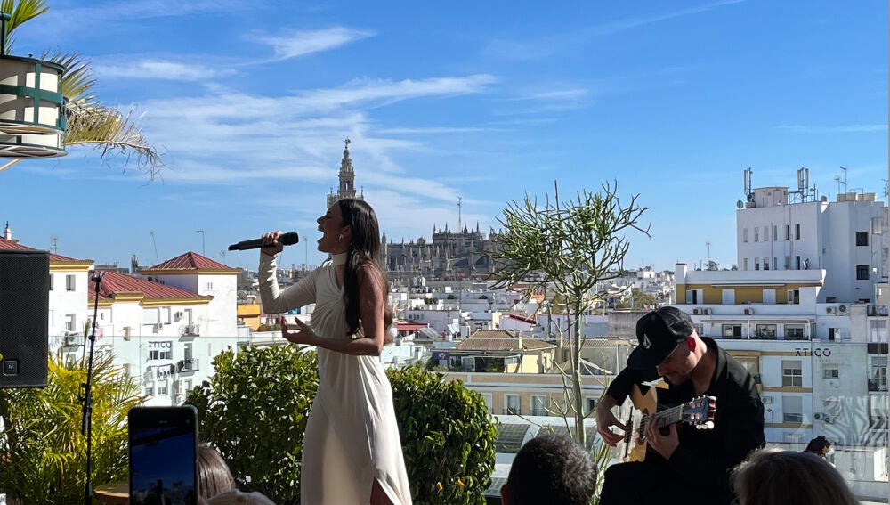La artista ilicitana ha ofrecido un secret show para fans y prensa en el ático del hotel Lobby Room, con vistas privilegiadas de la ciudad: la calle Betis, el puente de Triana, el río Guadalquivir, la Giralda y la Catedral han sido testigos de este íntimo showcase.