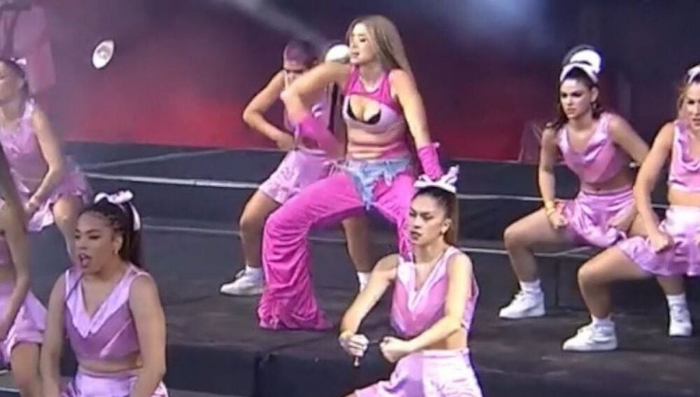 La artista se subía con su cuerpo de baile al escenario para ofrecer un show que se ha convertido en trending topic en Twitter, donde los usuarios han compartido decenas de vídeos. El show de la cantante fue retransmitido en directo por el canal de Twitch del festival.