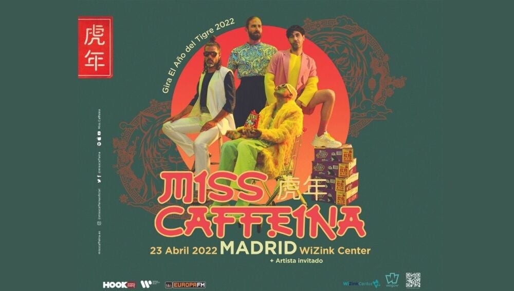 Los chicos de Miss Caffeina han creado todo un imaginario asiático para su nuevo disco, que llega con una gira homónina. El año del Tigre 2022 es un nuevo espectáculo en el que sus camaleónicos recursos se adaptan a la iconografía asiática para presentar un disco que aúna la búsqueda permanente de nuevos registros con esas composiciones, tan características del grupo, que conectan de forma especial con sus fans.