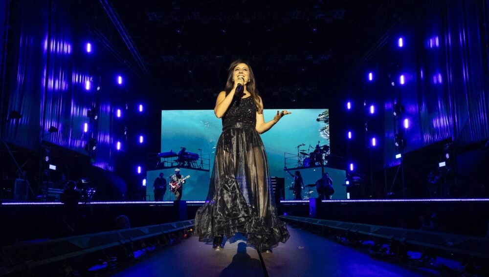 Acompañando a su vestido negro de unas gafas de sol, dándolo todo con Tal y como soy, la vocalista ha pasado a estar aún mejor acompañada con su propia sombra, que la seguía a cada paso que daba. Una escenografía que se ha repetido posteriormente en varias de sus actuaciones. Sin pausa, la han seguido Toda la noche en la calle y Rompehielos, con un público que no ha dejado de seguir los movimientos de brazos de la vocalista de un lado a otro. Mares igual que tú y Ruido han ido a continuación, fusionadas a la perfección mediante el solo del batería.