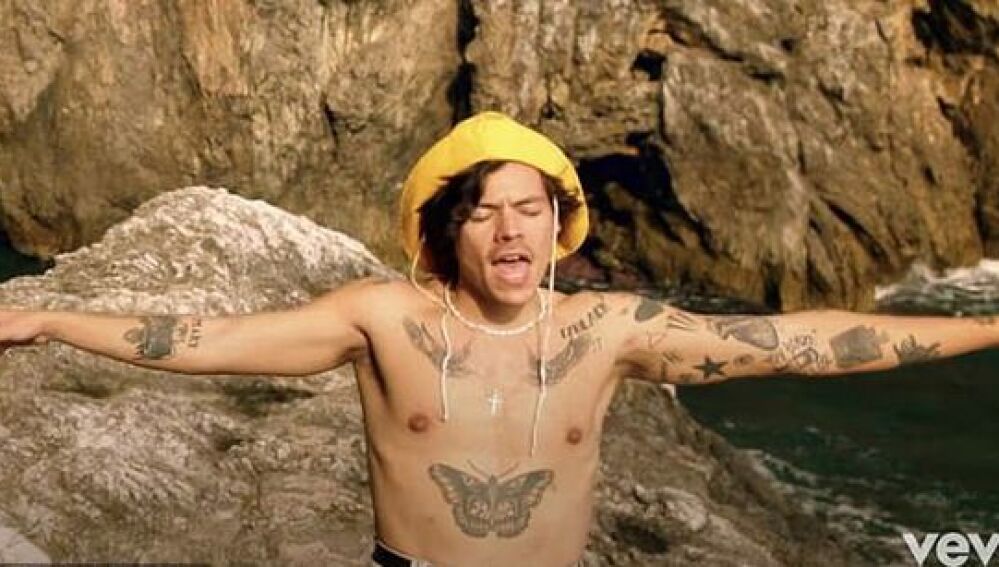 Sin duda, los tatuajes forman parte de la identidad de Harry Styles, en concreto la mariposa que lleva desde los 19 años en el centro del pecho.
