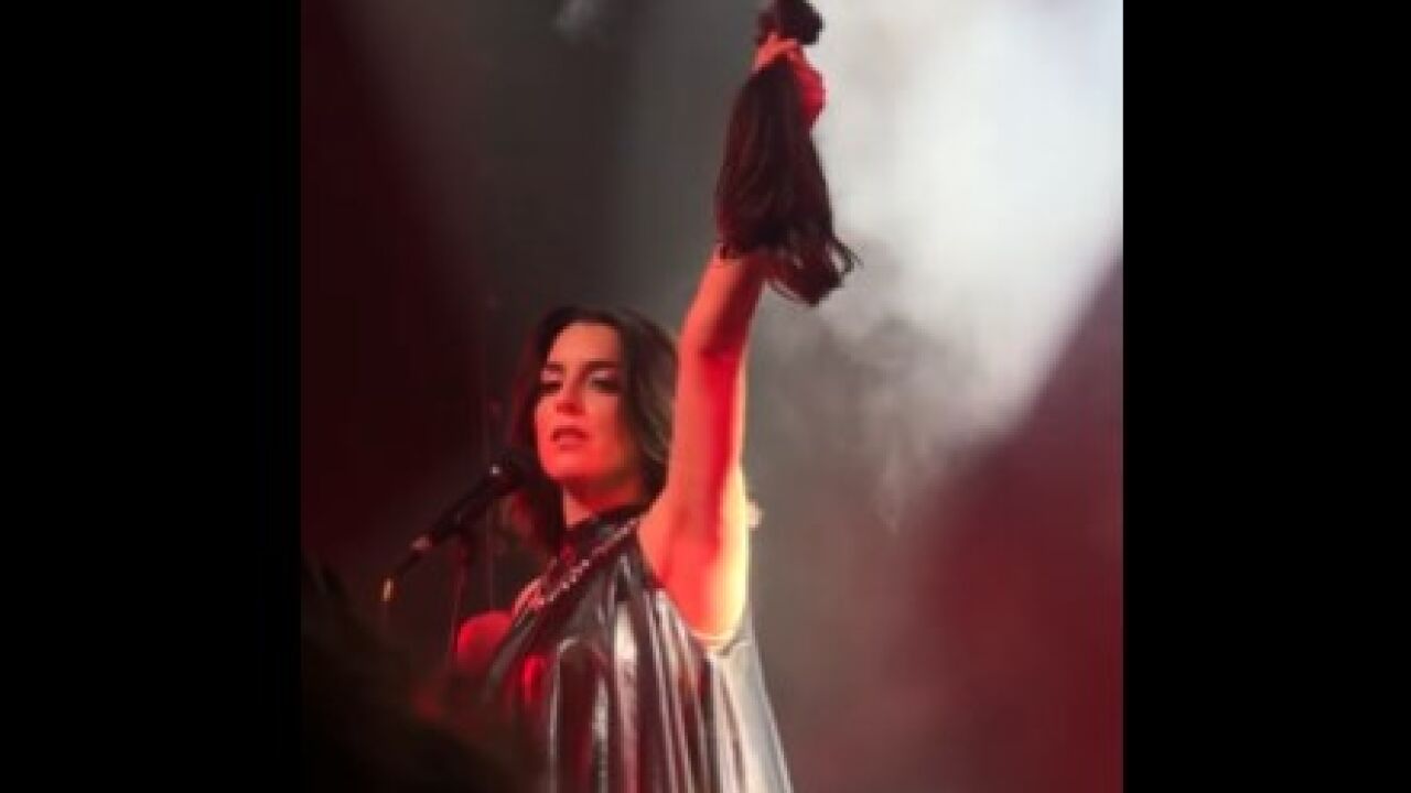 En pleno concierto, la cantante sacó las tijeras para desprenderse de su melena y cantar: "Soy fuerza y libertad".