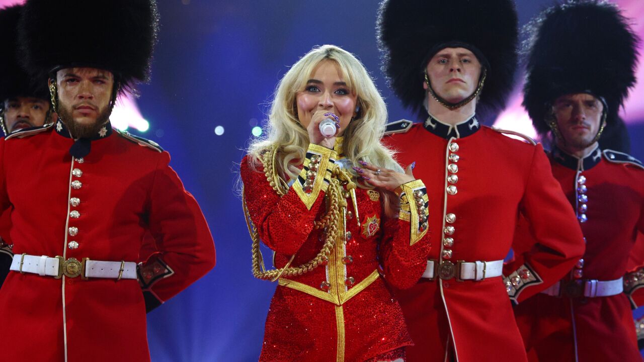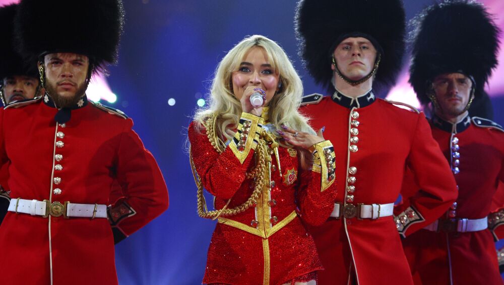 La estadounidense ha teñido el escenario de símbolos británicos durante su actuación con guardias del Palacio de Buckingham de Londres o banderas del país mientras interpretaba Espresso y Rule Britannia. Pero Sabrina Carpenter tenía más espectáculo escondido, y después de un pequeño parón ha vuelto sobre una plataforma en forma de corazón y con el rojo como protagonista para cantar Bed Chem.