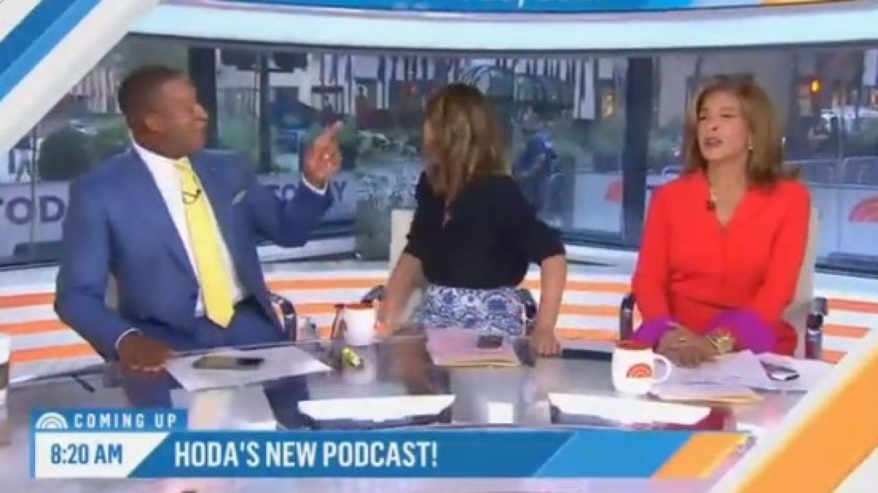 Los presentadores Hoda Kotb, Savannah Guthrie y Craig Melvin estaban en plena emisión cuando un runner exhibicionista hizo un photobomb desde el ventanal situado al fondo del plató y desde el que se ve la calle.