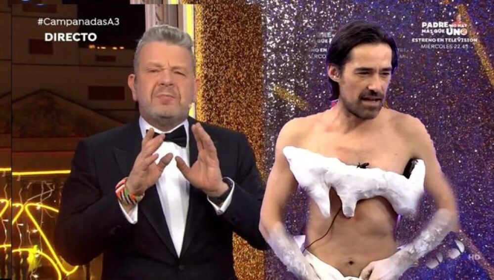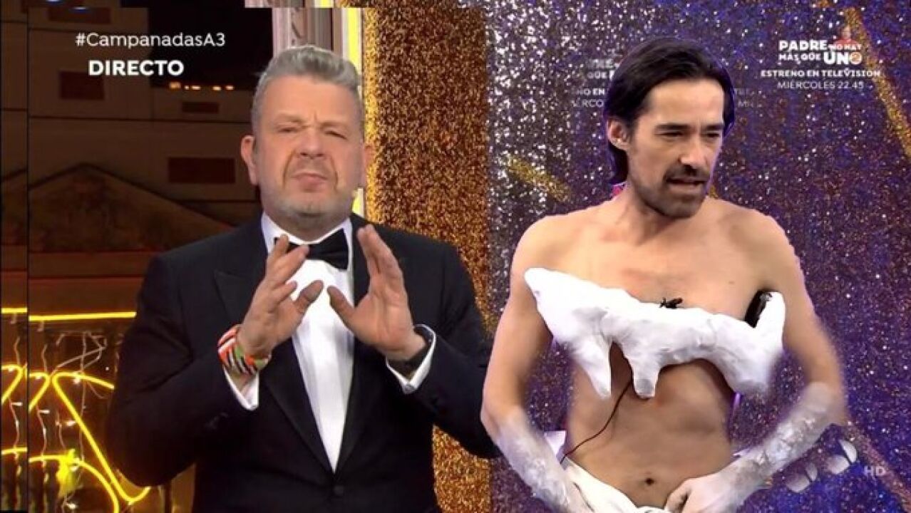 El mítico presentador de Art Attack ha recreado el que de momento es el look más viral de 2023, la paloma que formaba parte del vestido que Cristina Pedroche eligió para dar las Campanadas.